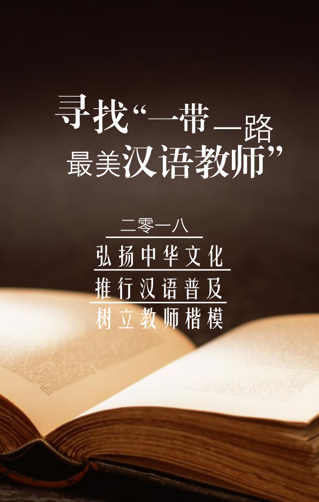 為進(jìn)一步弘揚(yáng)中國漢語文字推廣普及文化教育理論傳播,推進(jìn)漢語教學(xué)科學(xué)和諧發(fā)展,營造師生默契配合的濃厚學(xué)術(shù)氛圍,促進(jìn)學(xué)風(fēng)建設(shè),同時也為了給教師提供一個展示自我的平臺,現(xiàn)決定在一帶一路沿線國家開展2018年尋找“一帶一路最美漢語教師”評選活動。