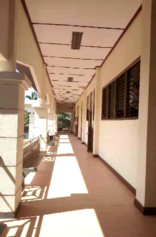 這是我上課的教學(xué)樓——語(yǔ)言學(xué)院,遵循著“看人先看臉”的原則,我們先看一下它的外在環(huán)境。看過(guò)前幾期介紹的小伙伴不難發(fā)現(xiàn),老撾國(guó)立大學(xué)的教學(xué)樓基本都是紅頂白墻,活潑跳躍的顏色彰顯著這所學(xué)校的朝氣。
