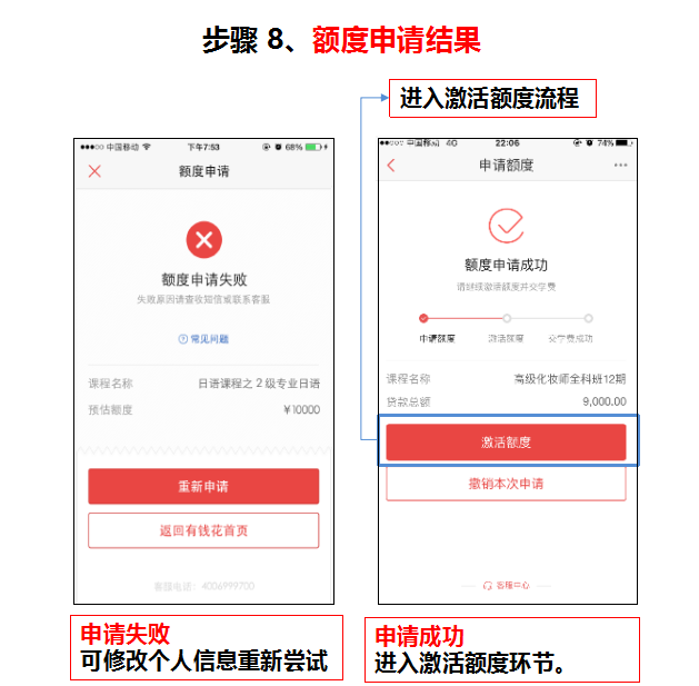 步驟 8、額度申請出結(jié)果,激活額度