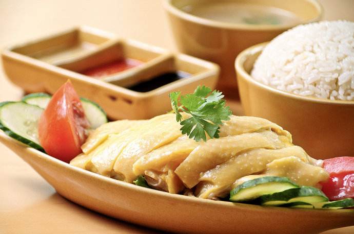 “你和新加坡的距離,只有一碗海南雞飯?!彪m然名字上說是海南雞,但真正紅起來,還是因?yàn)樗辉u(píng)為新加坡的國菜。海南雞飯又叫文昌雞飯,是用海南省文昌市的文昌雞做白切,并淋上醬油,搭配白米飯,鮮嫩清爽。