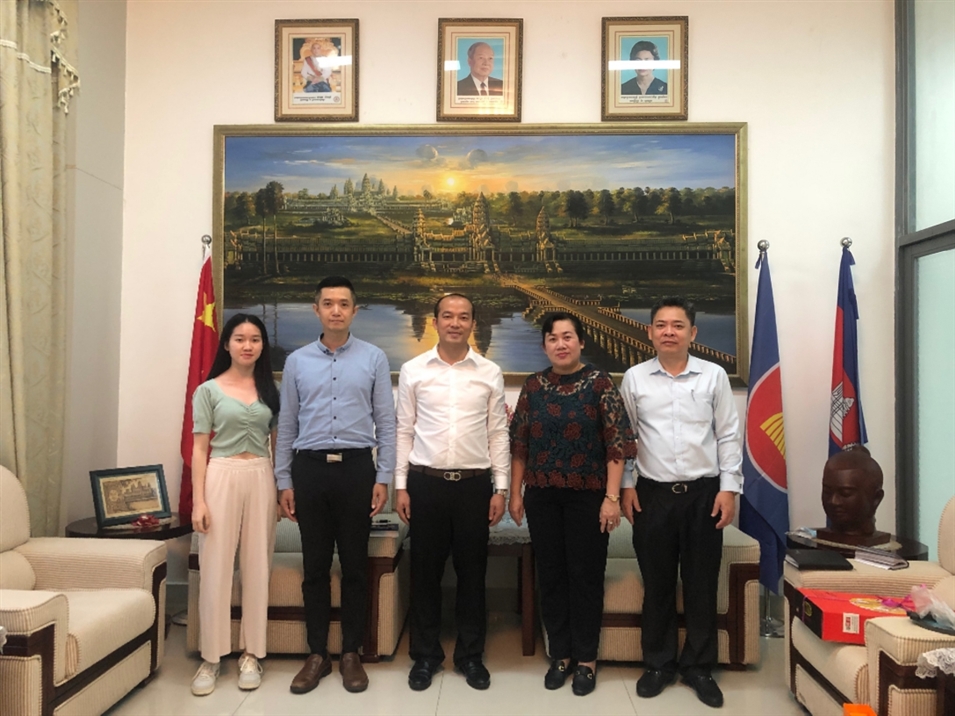 (左一新媒體中心韋清清女士、左二國(guó)際部主任陸士偉先生、中間廣西金沛教育執(zhí)行董事粟宥朝先生、右二柬埔寨王國(guó)駐南寧總領(lǐng)事輝蕾娜女士 合影留念)