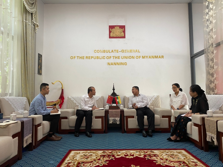 202099日下午,廣西金沛教育執(zhí)行董事粟宥朝、國(guó)際部主任陸士偉、新媒體中心韋清清一行拜訪了緬甸聯(lián)邦共和國(guó)駐南寧總領(lǐng)事館,總領(lǐng)事梭岱南熱情接見了我司的到訪,并就“關(guān)于中緬兩國(guó)教育交流與合作”展開了探討。