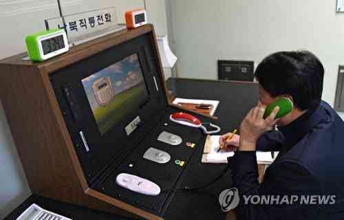 當(dāng)?shù)貢r(shí)間1月3日下午3點(diǎn)34分,在板門(mén)店聯(lián)合警備區(qū)聯(lián)絡(luò)事務(wù)所,韓方聯(lián)絡(luò)官拿起韓朝直通電話的話筒與朝方通話。(圖片來(lái)源:韓聯(lián)社)