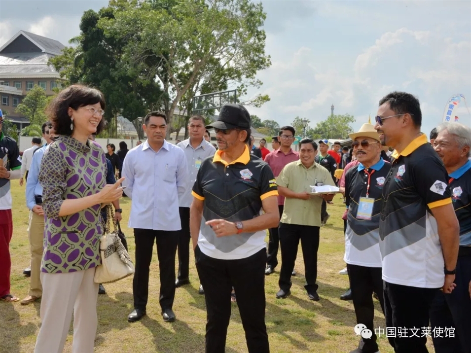 3月17日,于紅大使應(yīng)邀出席文萊首屆國(guó)際風(fēng)箏節(jié)開幕式。于紅大使在開幕式前看望中國(guó)選手,為他們加油鼓勁。于紅大使還陪同文萊蘇丹、王儲(chǔ)等王室成員和中國(guó)選手交流。